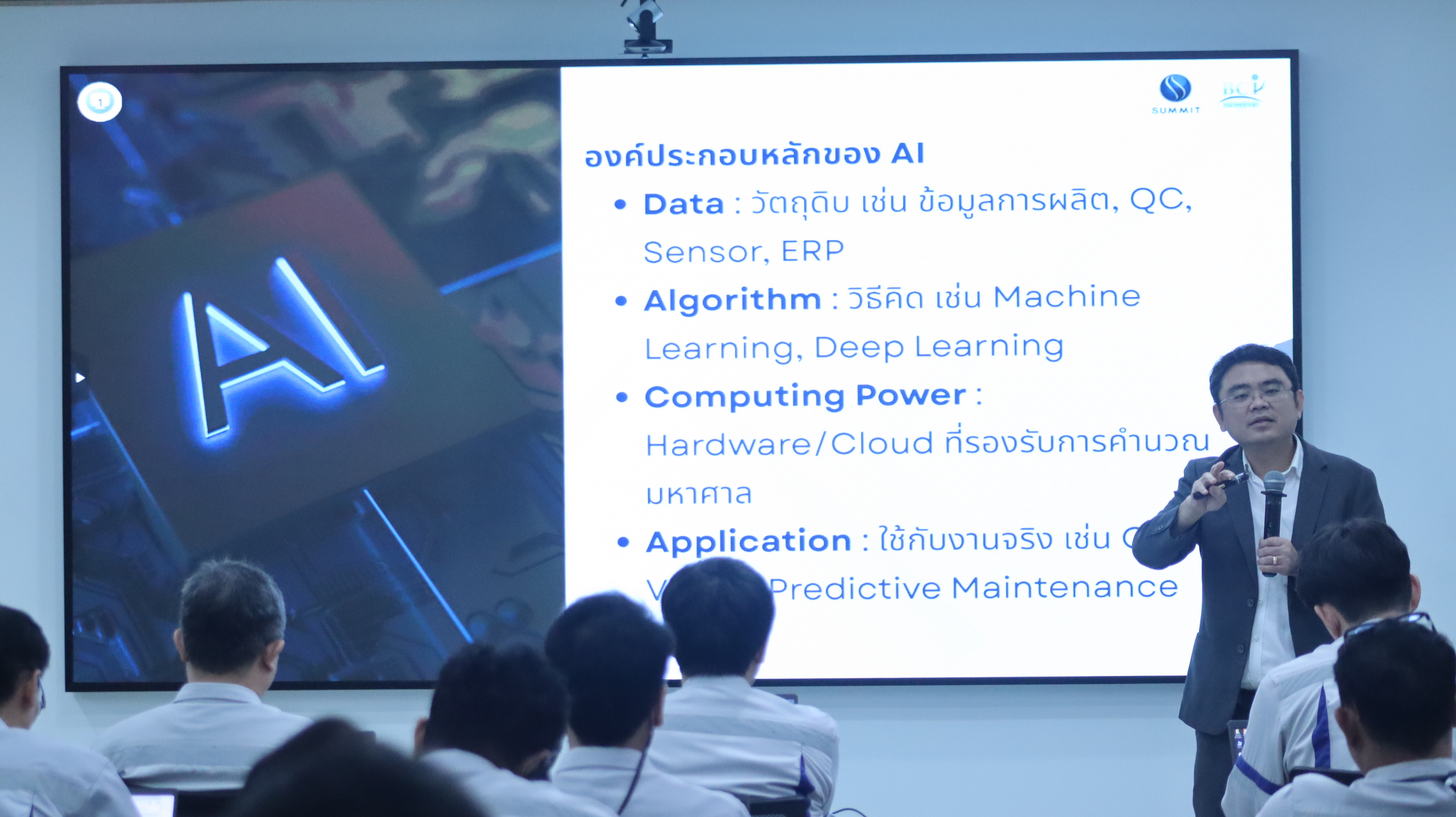 เมื่อวันที่ 9 ตุลาคม 2568 คุณธนพล ต่อสิทธิเดชกุล กรรมการผู้จัดการบริษัท บิสซิเนส คอมเพ็ดทิทีฟ อินเทลลิเจนซ์ จำกัด ได้รับเกียรติเป็นวิทยากรบรรยายในหลักสูตร “บทบาทของ AI ในธุรกิจผลิตชิ้นส่วนรถยนต์” ให้กับทีมผู้บริหารและบุคลากรของ บริษัท ซัมมิท โอโต บอดี้ สกิลส์ ดีเวลลอปเม้นท์ เซ็นเตอร์ จำกัด ณ จ.สมุทรปราการ